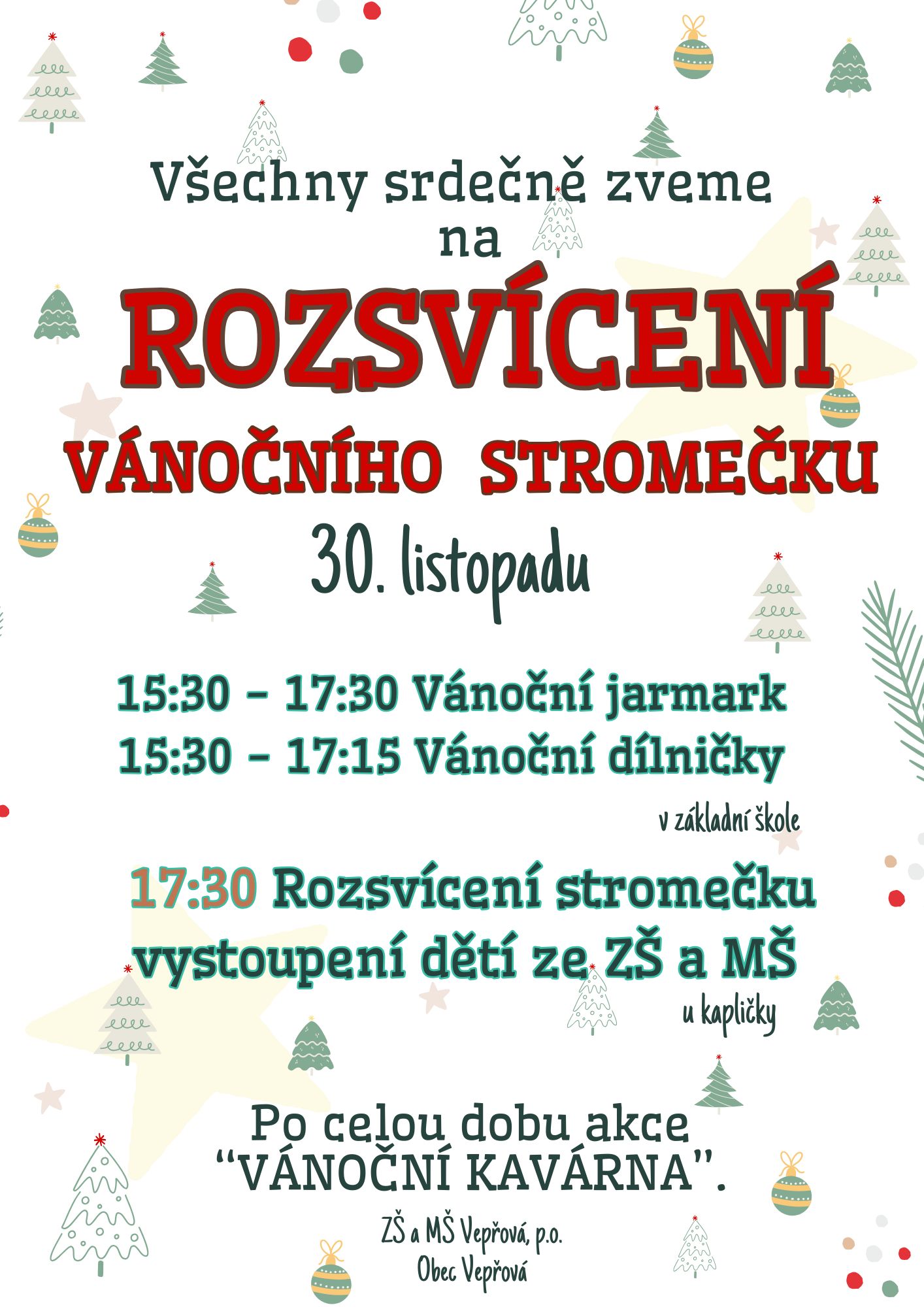 Obec Vepřová srdečně zve všechny občany na tradiční rozsvícení vánočního stromečku.